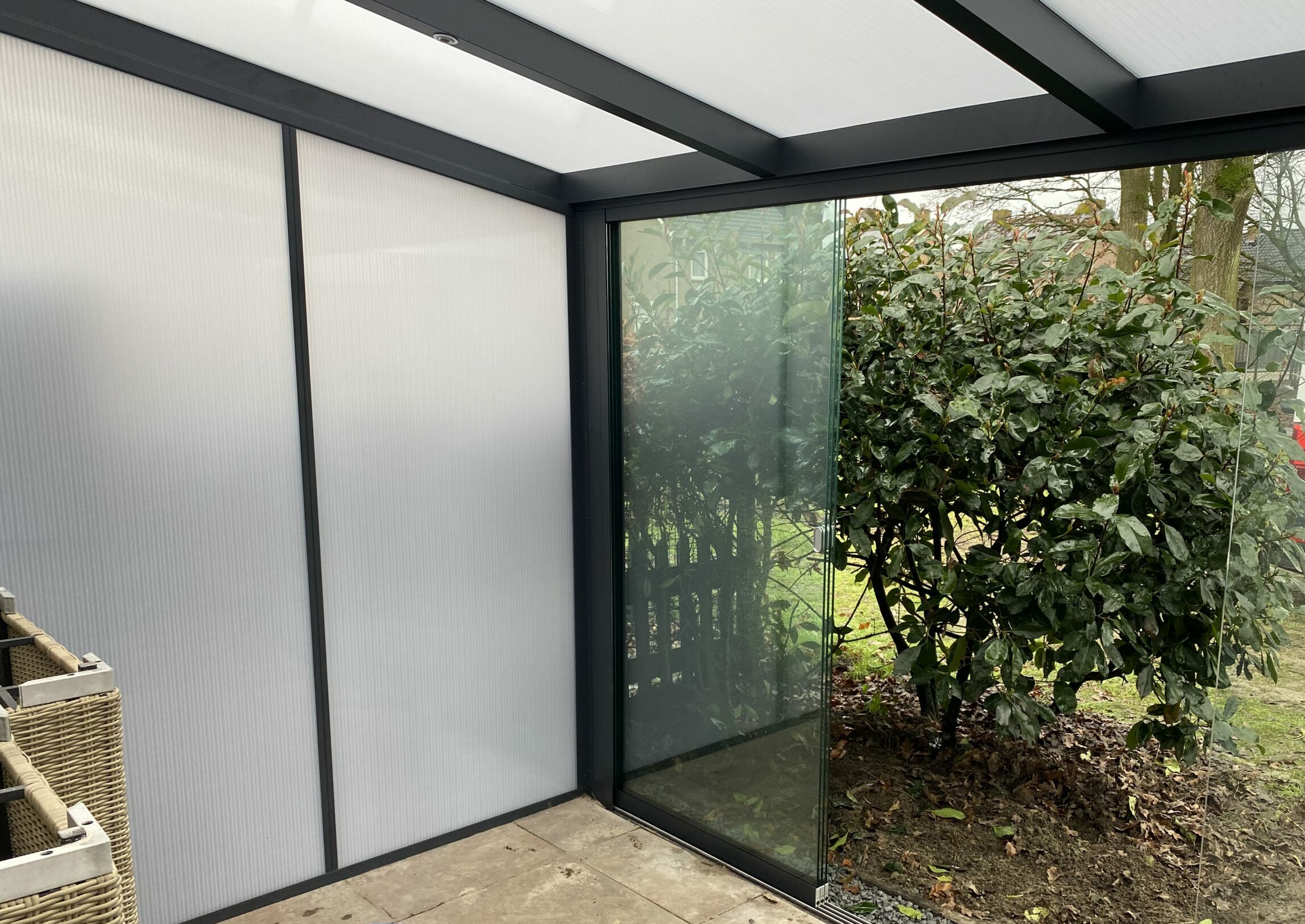 Voor extra comfort zijn de schuifwanden uit te breiden met tochtstrips en deurmeenemers. Daarmee houd je de kou nog beter buiten en schuif je meerdere glaspanelen soepel tegelijk open of dicht. Zo wordt jouw veranda of overkapping een plek waar je het hele jaar door comfortabel en zorgeloos kunt genieten.