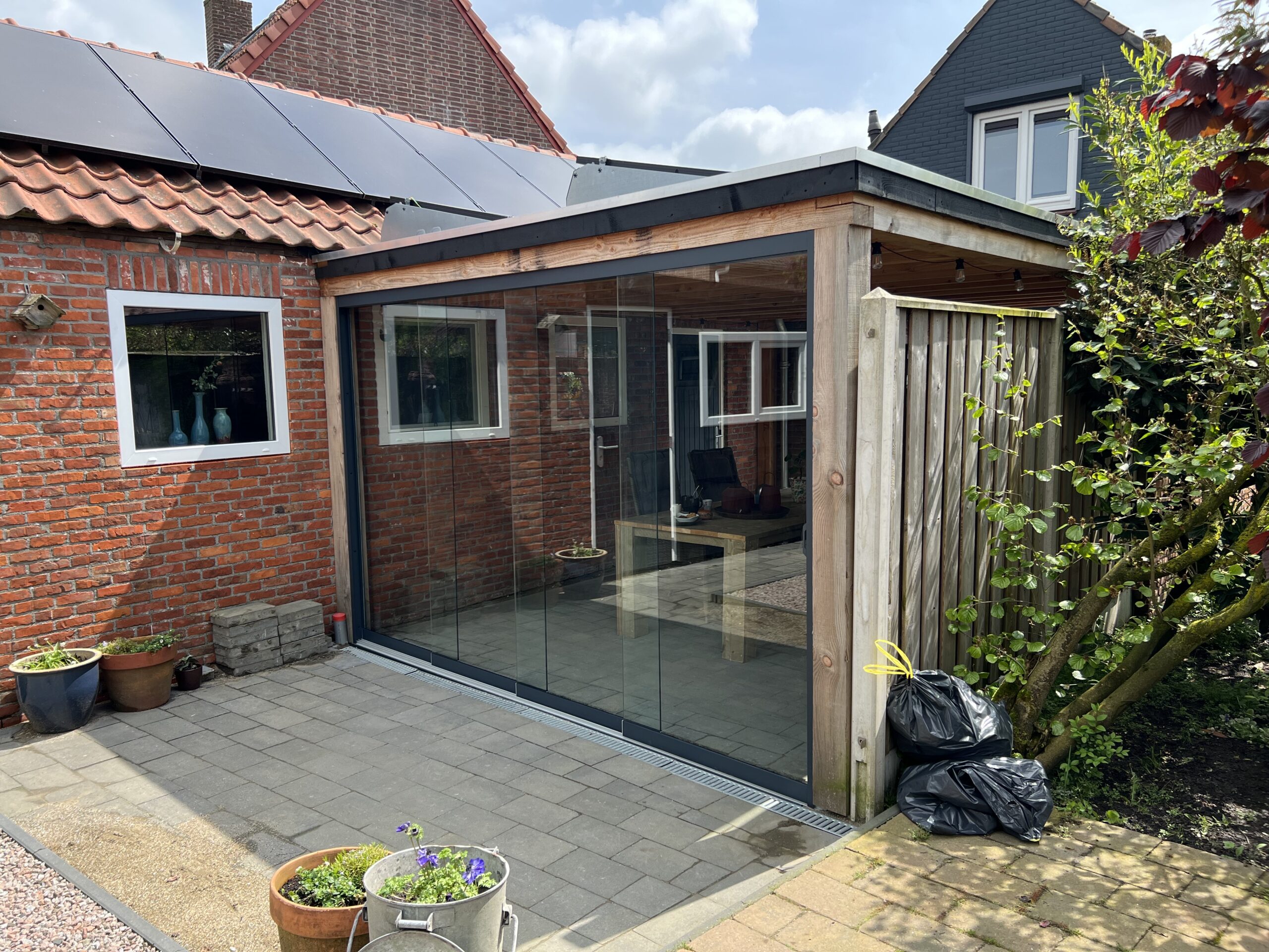 Onze glazen schuifwanden worden altijd op maat gemaakt en uitgevoerd in 10 mm gehard veiligheidsglas. Dit sterke glas zorgt voor een veilig gevoel in elke situatie en is uitermate geschikt voor gezinnen met kinderen of huisdieren. Het strakke, transparante ontwerp laat volop daglicht binnen en geeft je buitenruimte een moderne en luxe uitstraling.