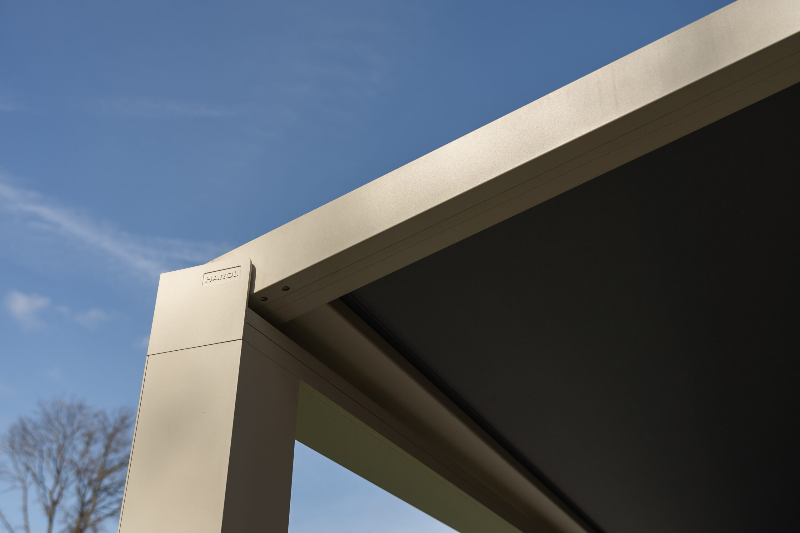 De Harol Air pergola maakt van je terras een plek waar je het hele jaar door kunt genieten. Het innovatieve oproldoek zorgt voor verkoelende schaduw op zonnige dagen, terwijl de verticale screens en de geïntegreerde waterafvoer je beschermen tegen wind en regen. Zo ben je verzekerd van comfort, ongeacht het weer.