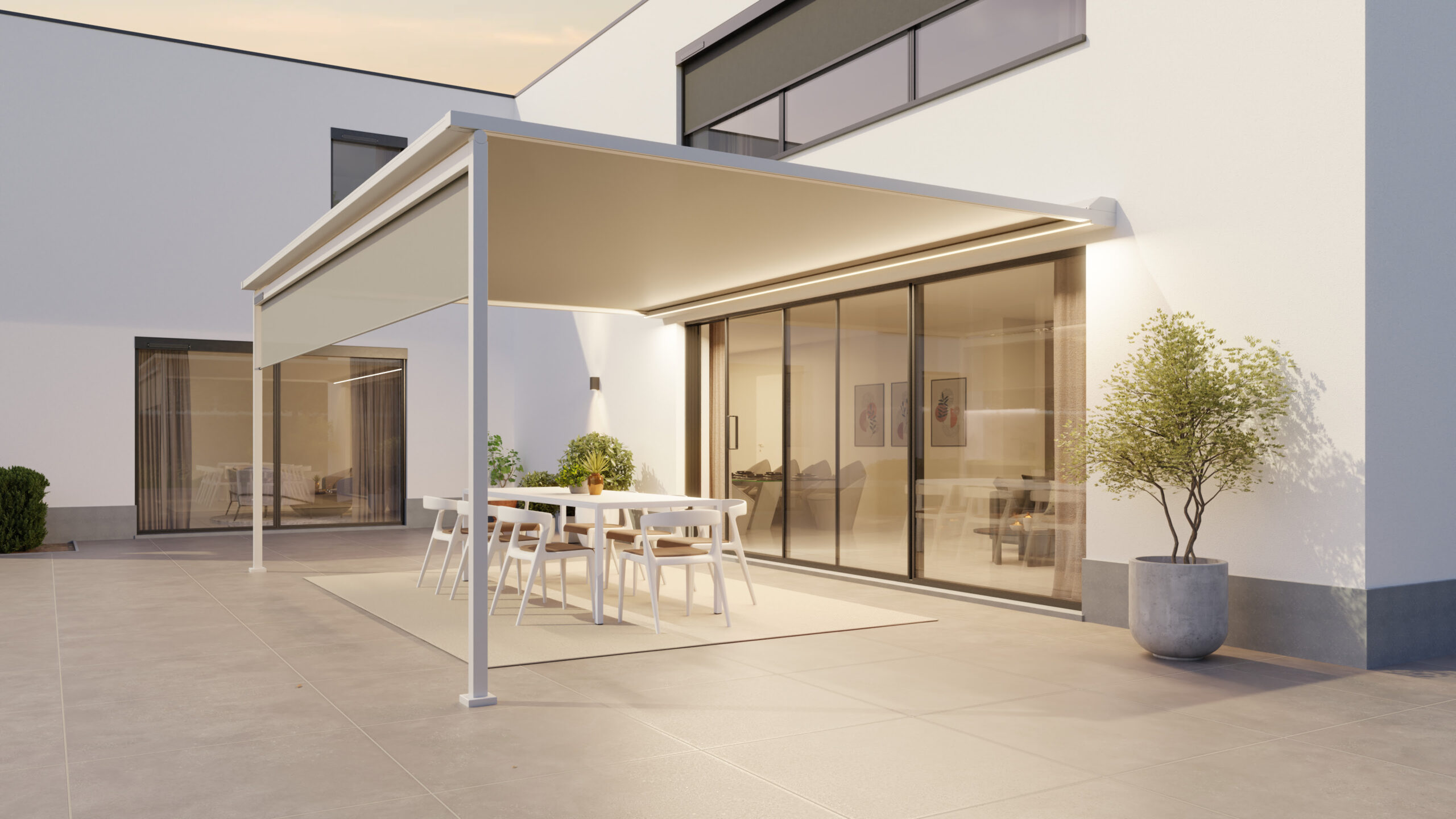 Net als de Versuz kun je de Linea volledig personaliseren met jouw favoriete kleur, afwerking en extra opties. Het resultaat is een pergola die zich niet alleen aanpast aan je woning, maar ook aan je manier van buitenleven.