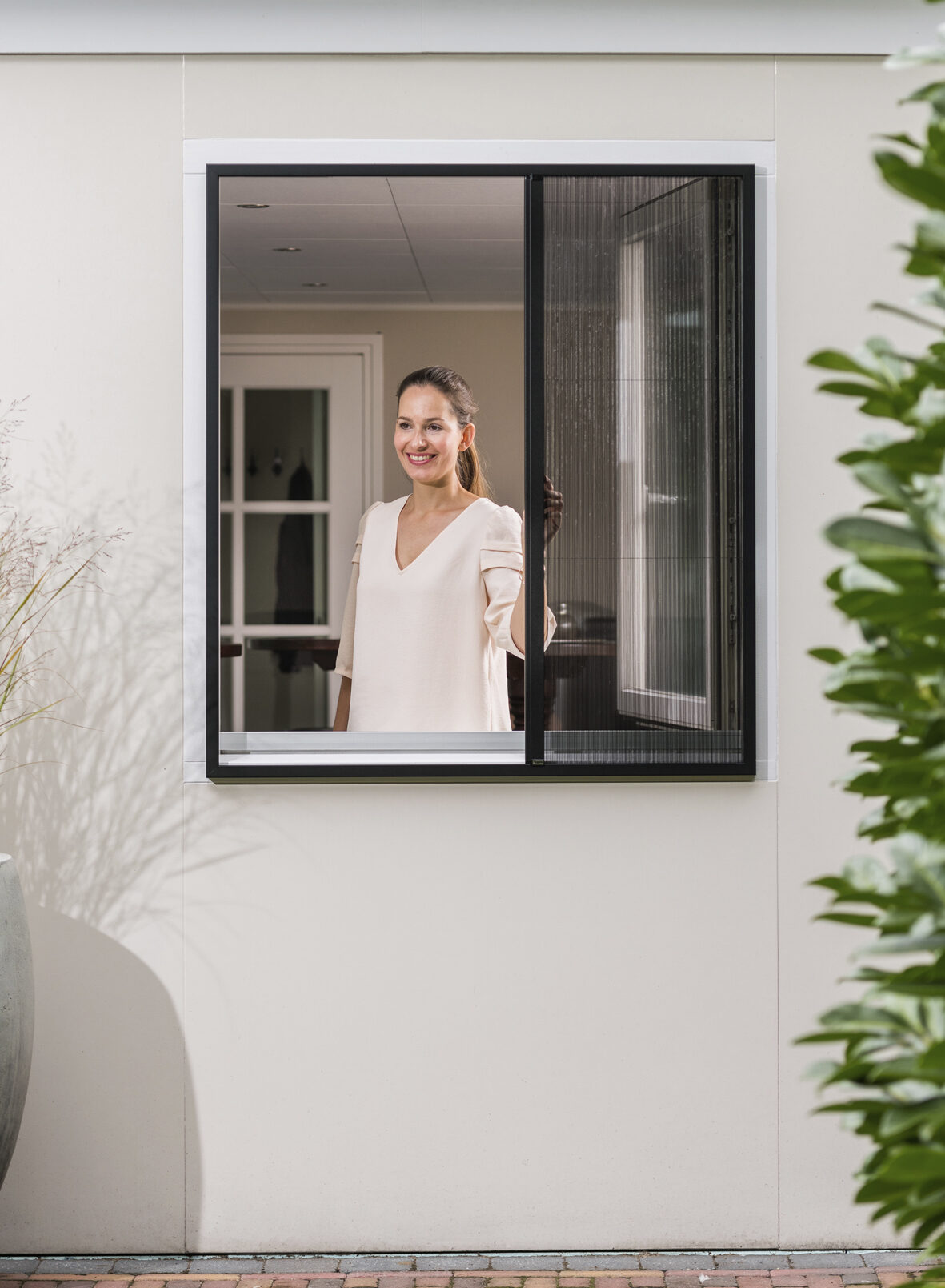 Een plisséhor is een stijlvolle raamhor waarbij het gaas zich zacht en soepel opvouwt. Dit geeft niet alleen een rustige uitstraling, maar maakt de hor ook heel prettig in dagelijks gebruik. Het zwarte geplisseerde gaas valt nauwelijks op, laat frisse lucht door en houdt insecten buiten, zonder dat je zicht naar buiten verloren gaat.